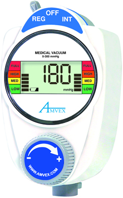 Amvex® offers a comprehensive line of Vacuum Regulators to help service your adult, pediatric, neonate and surgical populations. They are available in both Intermittent and Continuous models. Because our regulators have a technologically advanced design using modularity, your healthcare institution can easily upgrade models from Analog to Digital, and from Continuous to Intermittent. This modularity also provides for simple serviceability and maintenance.