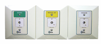 Our NFPA 99 compliant outlets accept Chemetron®, Ohmeda/Diamond, Puritan Bennett® and DISS specific adapters and are available for Wall/Ceiling, Console and Ceiling Columns installations.